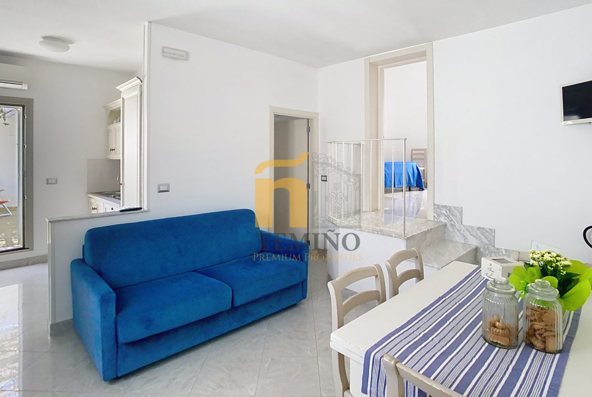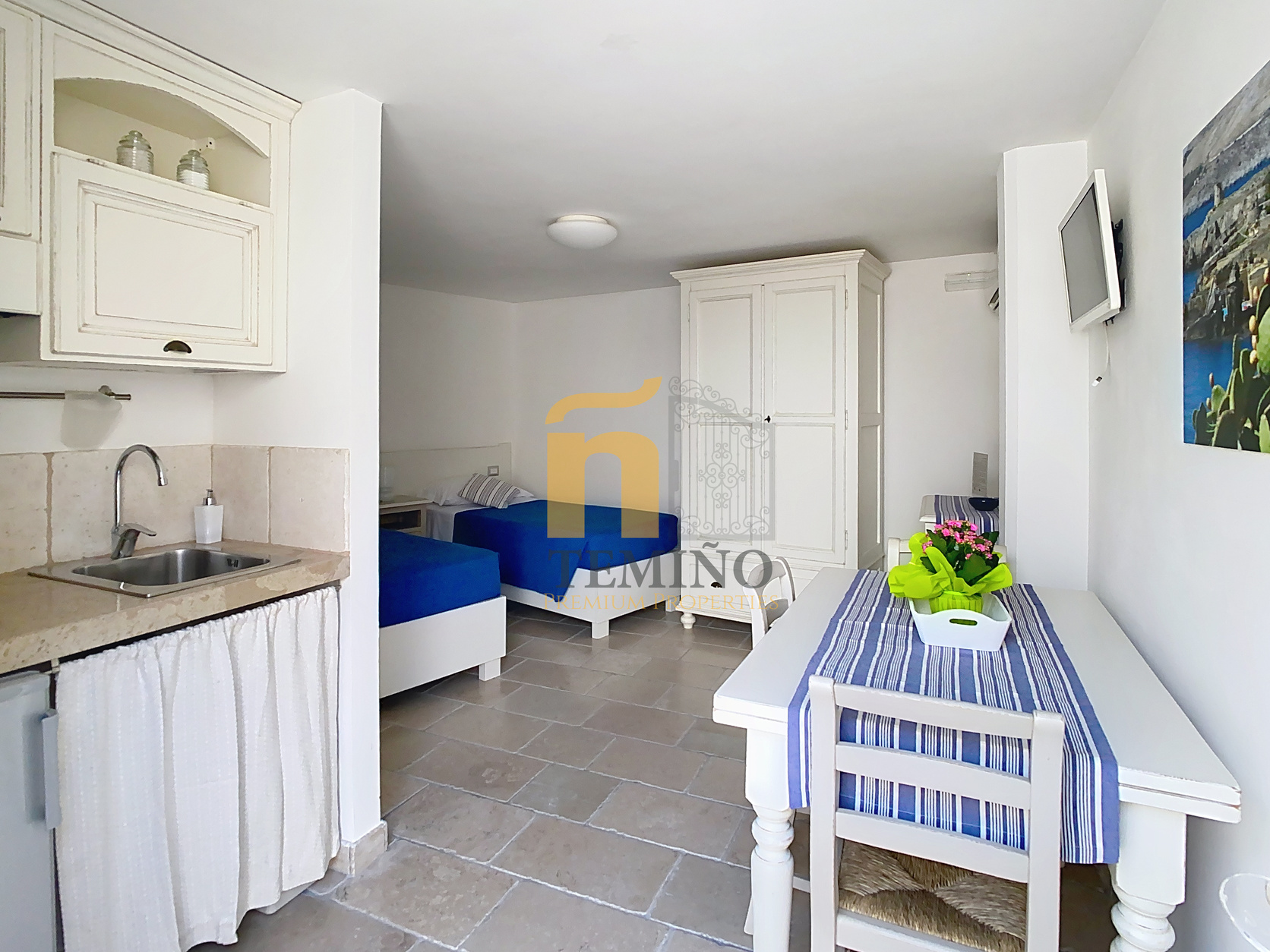 Infine, con ingresso indipendente dalla corte comune, in perfetto stile mediterraneo, troviamo un monolocale ideale per due persone, con ingresso con angolo cottura, due letti singoli e bagno con ampia doccia.