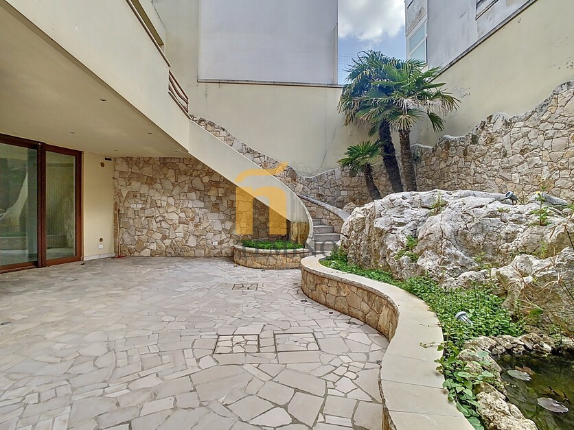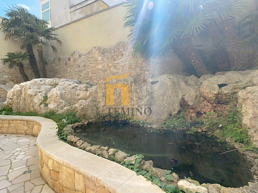 Una grande vetrata panoramica si affaccia su uno splendido spazio all’aperto, dove è stato realizzato un delizioso laghetto ornamentale con pesci, creando un’atmosfera di serenità. Questo angolo di giardino si presta perfettamente anche per organizzare cene estive all’aperto, immersi nella tranquillità.