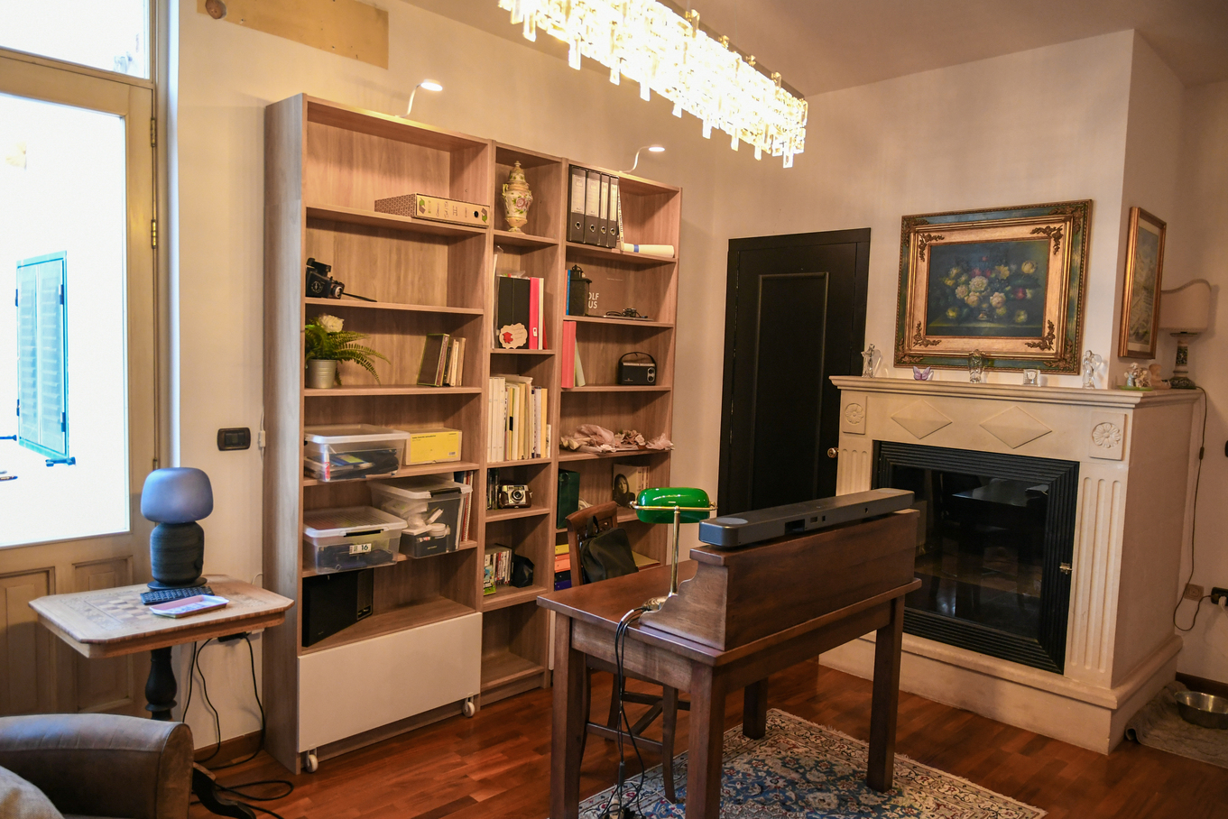 Lo studio rappresenta lo spazio ideale per chi desidera dedicarsi al lavoro immerso in un’atmosfera di calma e concentrazione. Il camino aggiunge un tocco di calore, rendendo lo spazio perfetto anche per i momenti più unici della giornata.
