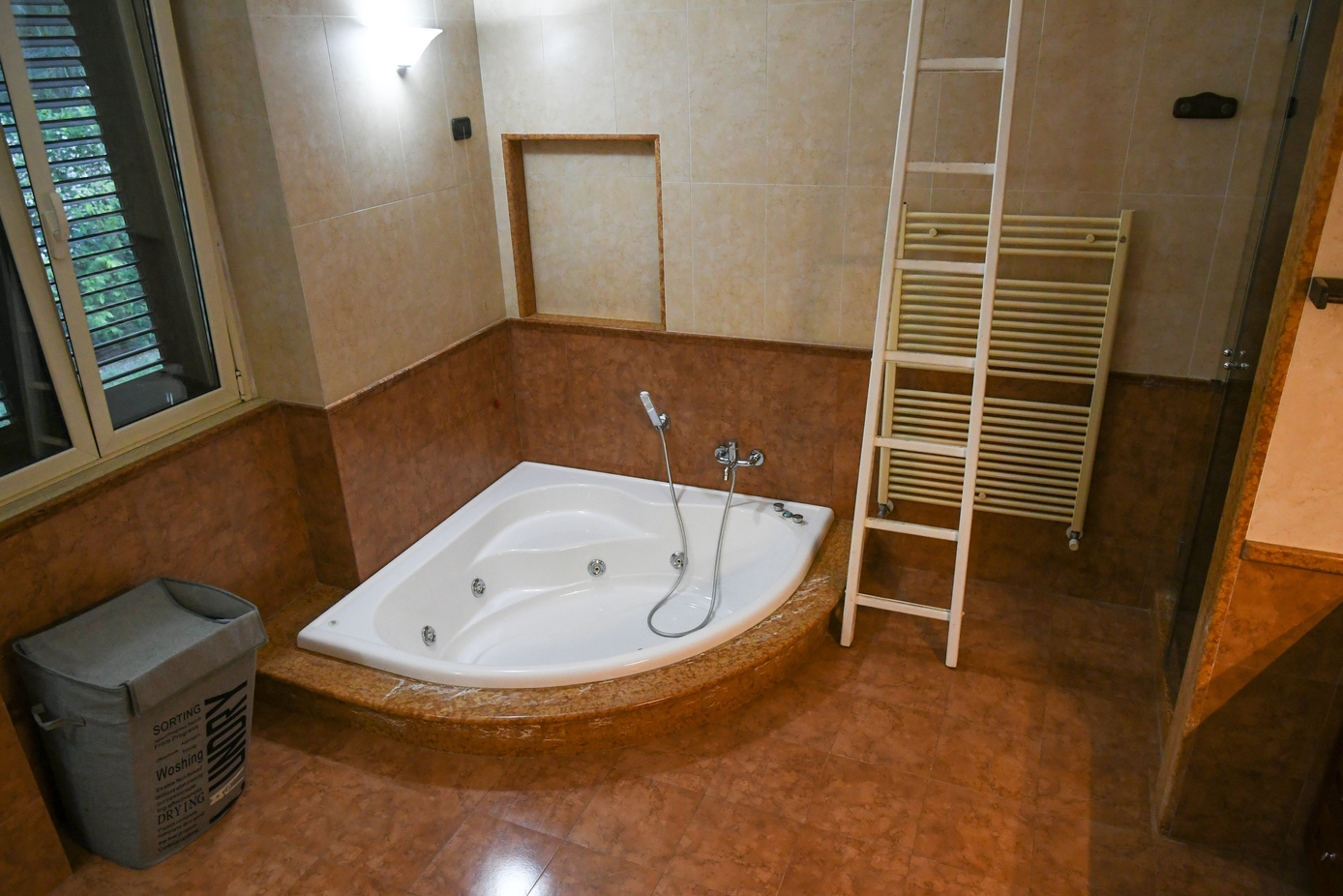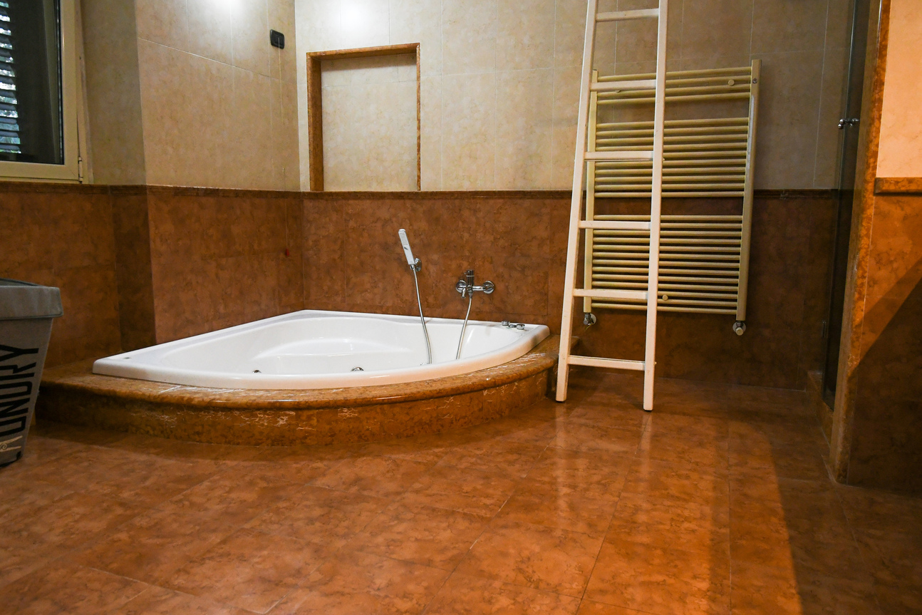 I due bagni sono stati progettati per offrire il massimo del comfort. Particolarmente affascinante è quello principale, dove la protagonista assoluta è una vasca idromassaggio angolare elegante in un’elegante struttura rivestita in marmo. Un ambiente rilassante, perfetto per rigenerarsi dopo una lunga giornata.